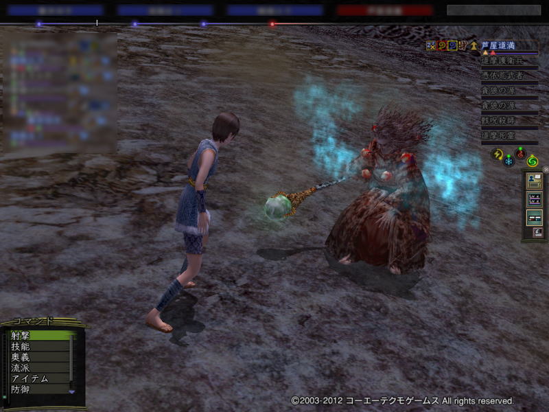 今回は、武功もあるし駒王丸もやろうか~ということで、1のボスの奥の両側の敵を結晶を集めつつ倒して進み、出てきた静御前と弁慶さん、巴御前と駒王丸と倒しました。