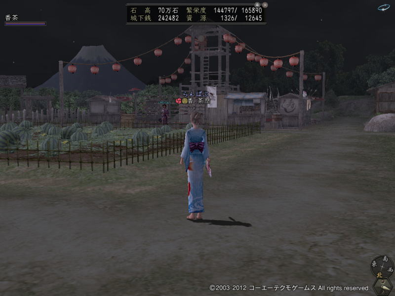 他の資源のところもほとんどすいか畑にして、太鼓櫓も増やして、そばに酒場も改装して置いて、夏っていうかお祭りっていうかそんな感じになってきました。
