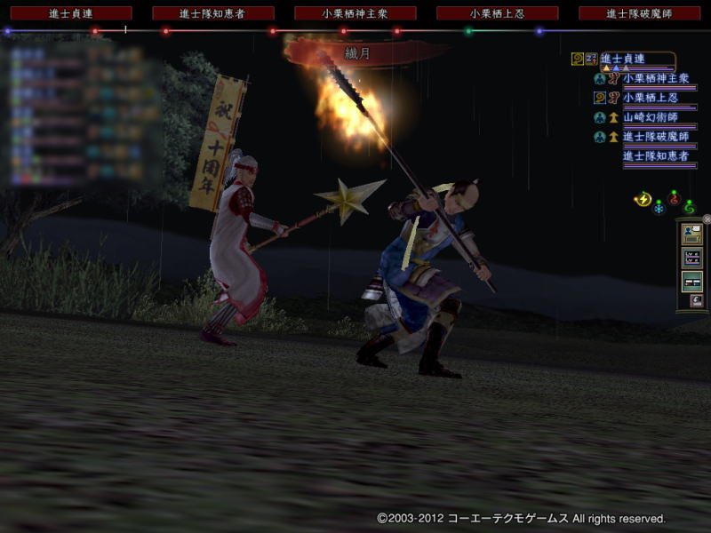 やってみて、1回目は主に家臣にまかせてたら回復が間に合わなくて負けてしまったので、次はわたしの仏門でも回復多目にするように心がけたら2回目は勝てました。
