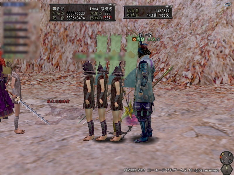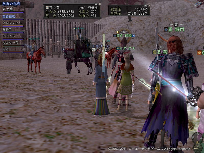 名前はちょっとあやしいけれど、みなさん合戦好きで、大人な人が多くて、気さくな感じのよい雰囲気な一門です。なんだか宣伝ぽいけど。(・∀・)